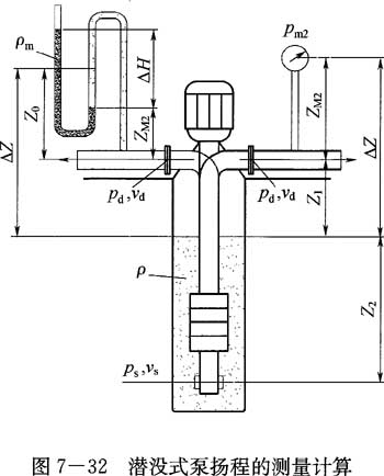 ①用壓力表讀數(shù)計算揚程由圖7-32所示