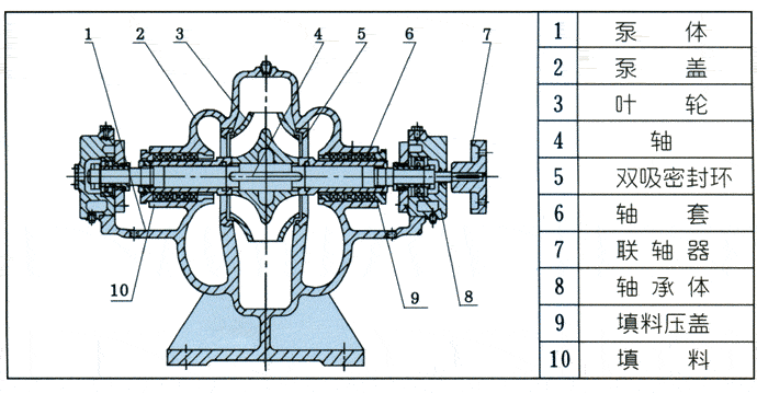 S型單級(jí)雙吸離心泵結(jié)構(gòu)圖: