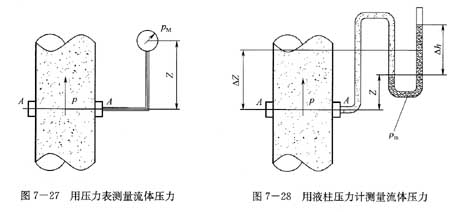 2)用液柱壓力計(jì)測(cè)量截面A-A處的壓力,圖7-28所示