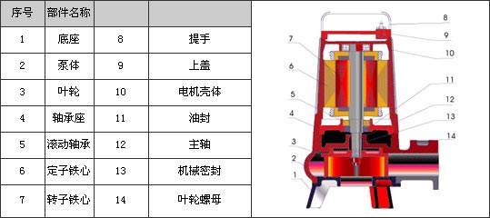 AS、AV型潛水式排污泵結構圖: