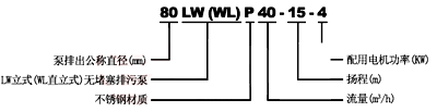 LW立式無堵塞排污泵型號意義: