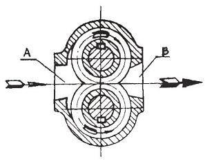 嚙合的齒輪在泵體內(nèi)旋轉(zhuǎn)時(shí),輪齒不斷進(jìn)入和退出跟嚙合。在吸入室,輪齒逐漸退出嚙合狀態(tài),這樣吸入室的容積逐漸增大,壓力降低,液體在液面壓力的作用下進(jìn)入吸入室,隨齒輪齒間進(jìn)入排出室。在排出室,輪齒又逐漸進(jìn)入嚙合狀態(tài),齒輪的齒間逐漸被一齒輪的輪齒占據(jù),排出室的容積減少,排出室內(nèi)液體壓力升高,于是液體從泵的排出口被排出泵外,齒輪邊續(xù)旋轉(zhuǎn),上述過程不斷進(jìn)行,形成連續(xù)的輸油過程。